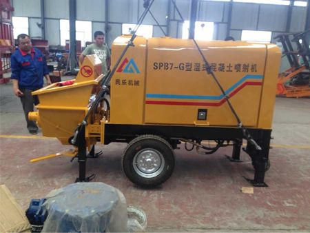 礦用混凝土濕噴機作為混凝土泵用濕噴時,由于水灰比易于控制,混凝土強度高,噴射密實度高,可大大完善噴射混凝土的品質,提高混凝土的勻質性,提高了煤礦井下的支護強度。同時由于回彈率低,合理的降低了生產成本,減輕了工人的勞動強度,大大提高了煤炭企業的經濟效率和生產效率。適用于大小煤礦井下、皮帶機、煤倉、水倉、運輸大巷等、較大斷面較高面試用、解決了大斷面大量混凝土燒注難題、效果非常好。主要特點采用井下現場攪拌5分鐘后,即可高壓風把混凝土輸送到所需工作面、輸送高度在25米以上位置。設備結構簡單、靈活、牢固、操作方便、井下便以移動、適應井下各種環境作業。