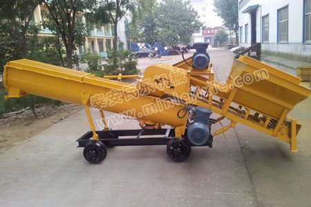 本攪拌機(jī)為便于運(yùn)輸及存放,采用分體式結(jié)構(gòu)。水泥輸送帶、沙子輸送帶、細(xì)石輸送帶為一部件,螺旋攪拌為一部件。為便于活動以上各部件都裝有拖輪或滾輪。運(yùn)輸時攪拌機(jī)構(gòu)放下支腿使導(dǎo)軌輪離地即可裝車運(yùn)輸。