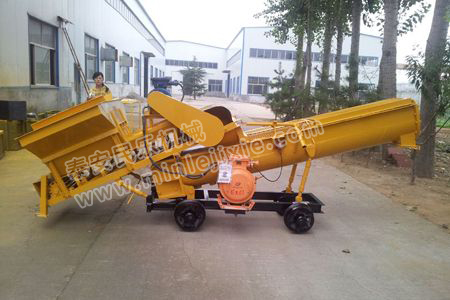 使用時收起攪拌機(jī)構(gòu)的支腿,調(diào)整好攪拌機(jī)構(gòu)的位置后放下支腿使導(dǎo)軌輪離地,按外形圖圖示將水泥輸送帶、細(xì)石輸送帶搭扣在攪拌機(jī)構(gòu)上即可。