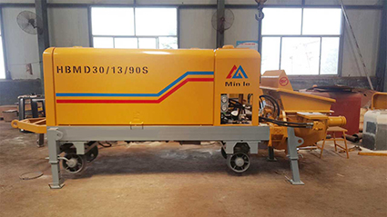 該泵是我廠吸收和消化當前國內外混凝土泵的先進技術,針對礦井混凝土施工諸多不便的條件,并結合長期混凝土泵的設計和制造經驗,同科研單位共同研制生產的創新產品,改寫了礦用混凝土泵無法整機下井的歷史,改變了以往井下混凝土施工采用人工多層倒運的傳統作業方式。