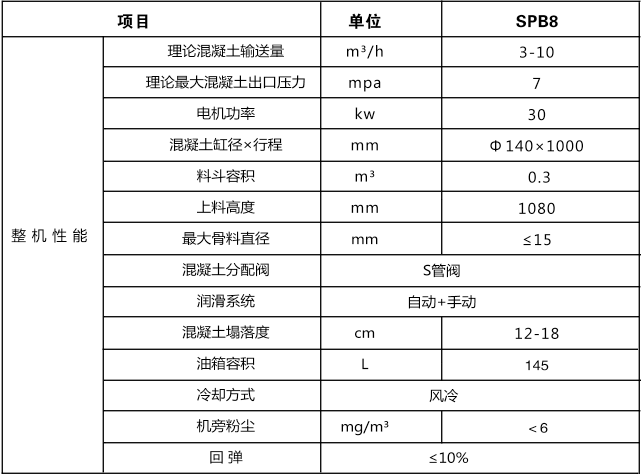 SPB8型濕式混凝土噴射機(金屬礦山專用)主要技術參數: